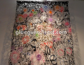 Clare recently graduated from Manchester Metropolitan University and is renowned for creating large-scale illustrative pieces of work using thermoplastic EVA adhesives. She is currently using Tecbond 232 hot melt adhesive to create art, which is then lacquered to preserve it. Her art ranges right from large-scale wall pieces down to items of jewellery. She describes the inspiration behind her work as being to subvert the use of ordinary, everyday materials to make unusual, curious objects that you can wear, use or just look at.