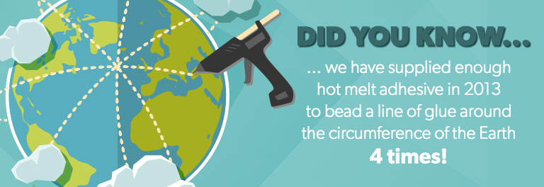 Did you know we have supplied enough hot melt adhesive in 2013 to bead a line of glue around the circumference of the Earth.