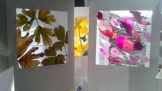 Step 9: The clarity of the glue, gently suspending the petals gives an almost stained glass effect. The glow of light passing through, illuminating colour and texture. The light acts as one aspect of the perception of space and the clear glue holding the materials, creates the illusion of weightlessness.