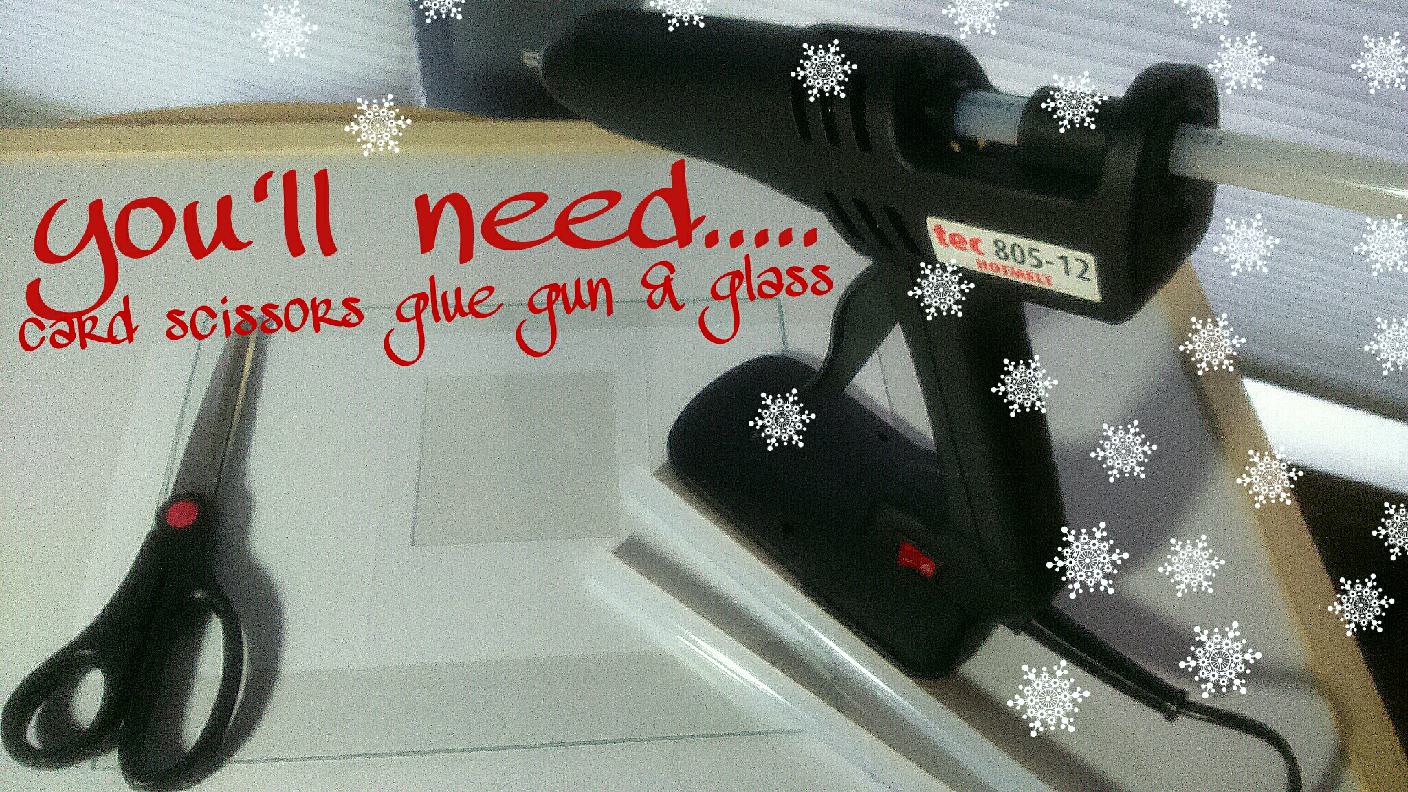 Step 1: You will need card, scissors, glue gun and Tecbond 132 clear glue sticks and a piece glass or Tec mat