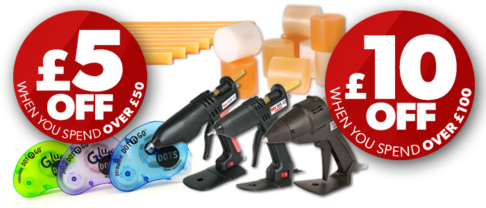 Buy glue guns, glue sticks and glue dots and get an extra discount at checkout.