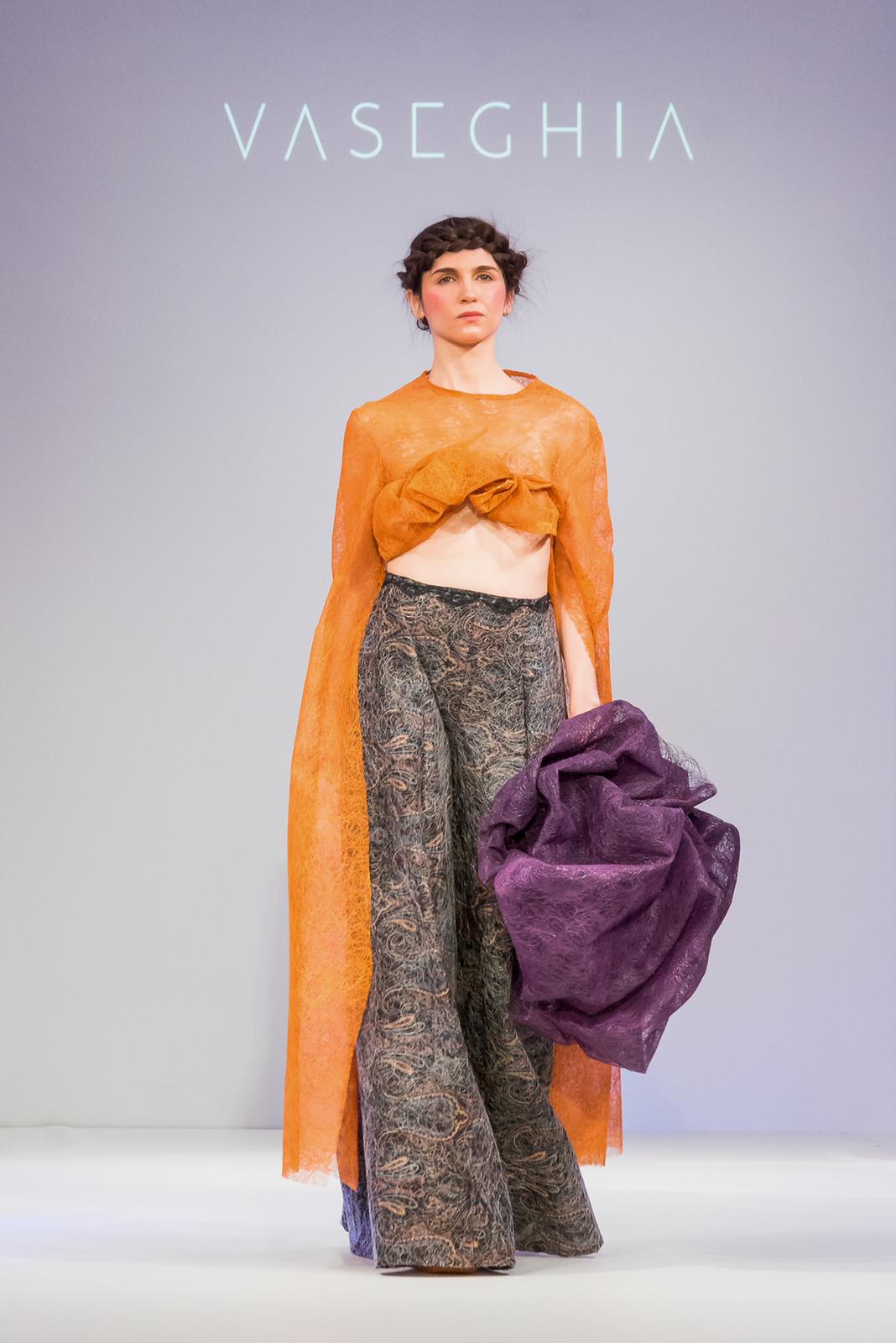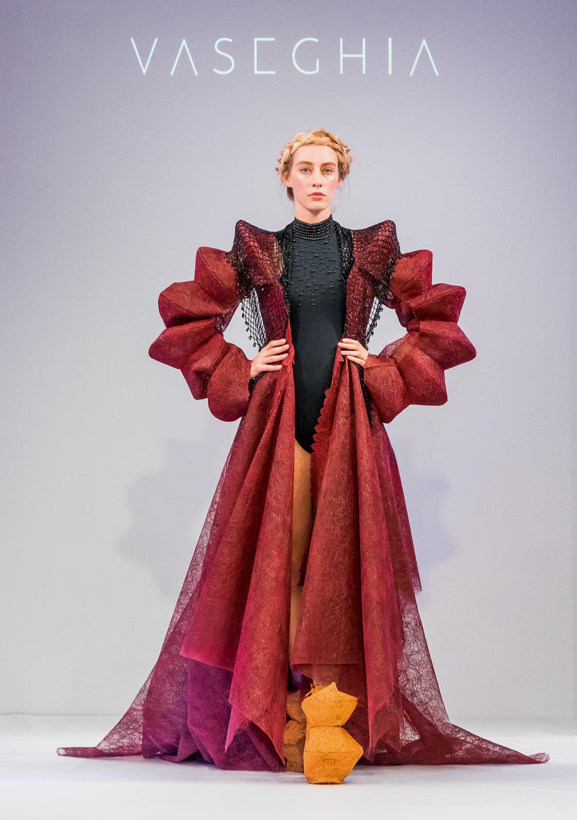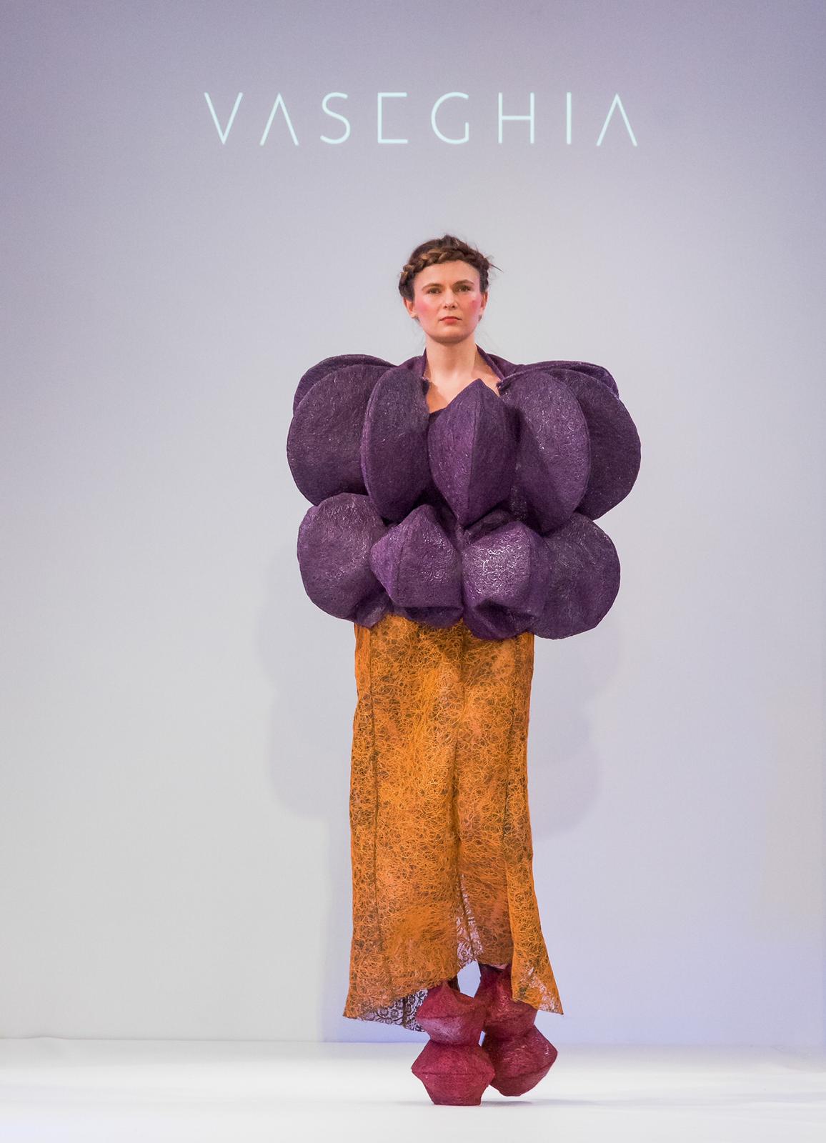 Alisa Vaseghi, the British-Persian specialises in fashion collections made with alternative and unconventional materials. Her most recent collection took inspiration from the field of neuroscience, compositing lace and hot melt adhesive to create a unique fabric.